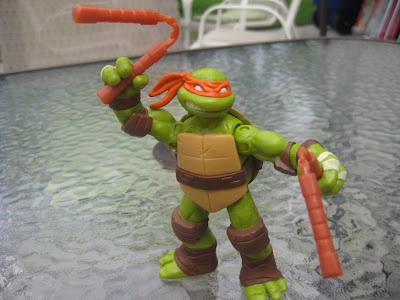 I think it's because he's the designated "goofball" of the group, and that's always rubbed me the wrong way. Plus his weapons are freaking lame. I don't hate him or anything like that, but I bought this figure more out of necessity to own all four Turtles than a specific desire for Mikey.